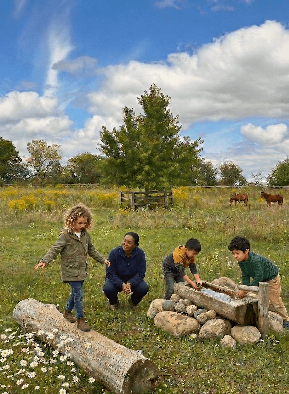 Our nature-based program fosters curiosity and self-discovery by immersing children in sensory-rich outdoor play that supports motor skill development and emotional regulation. By tailoring activities like log balancing and water exploration to each child’s unique needs, we provide a calming environment that prevents overstimulation while celebrating their individuality. Guided by experienced educators, children are empowered to lead their own exploration, building a deep connection with the natural world as they uncover their own unique stories.